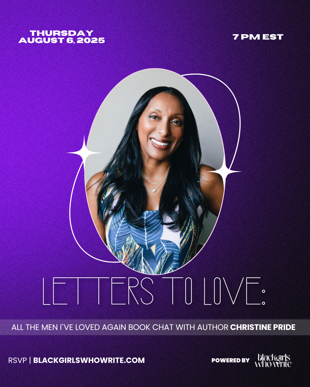 Join Black Girls Who Write for an intimate and inspiring evening with acclaimed author Christine Pride, as we dive into her newest novel, All the Men I’ve Loved Again. This powerful story explores love, loss, and the resilience of the Black female experience through characters that will stay with you long after the final page.